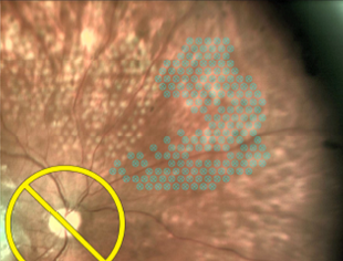 Die navigierte Lasertherapie kombiniert die retinale Bildgebung mit einem therapeutischen Netzhautlaser. Unser NAVILAS® System der neuesten Generation führt die Bilder der Netzhautangiographie/der optischen Kohärenztomographie mit dem Behandlungsplan zusammen. Hieraus resultiert eine hohe Präzision und Sicherheit der Behandlung sowie, durch eine reduzierte Blendung bei Behandlung unter Infrarot-Licht, eine geringere Belastung der Patienten. Durch eine spezielle Einstellung des Lasers (Pulsserien) wird eine netzhautschonende Behandlung bei Makulaerkrankungen möglich.