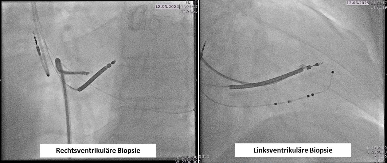 Angiographische Darstellung einer rechts- und linksventrikulären Biopsie.