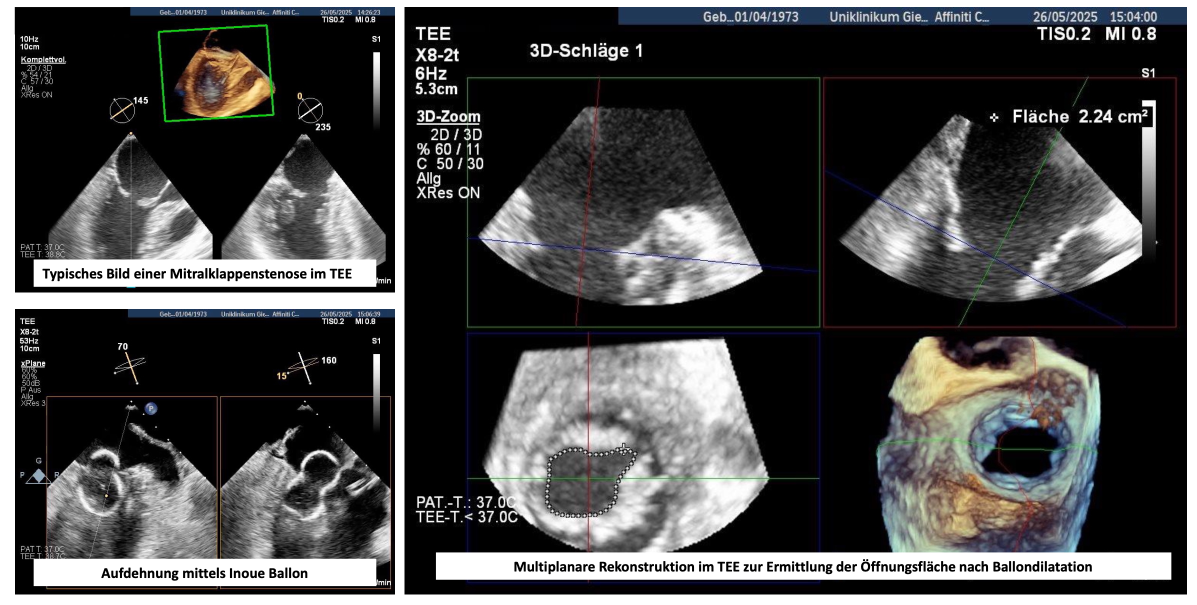 Schuckultraschallbilder während der interventionellen Behandlung einer relevanten Mitralklappenstenose