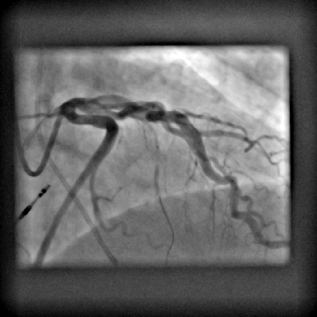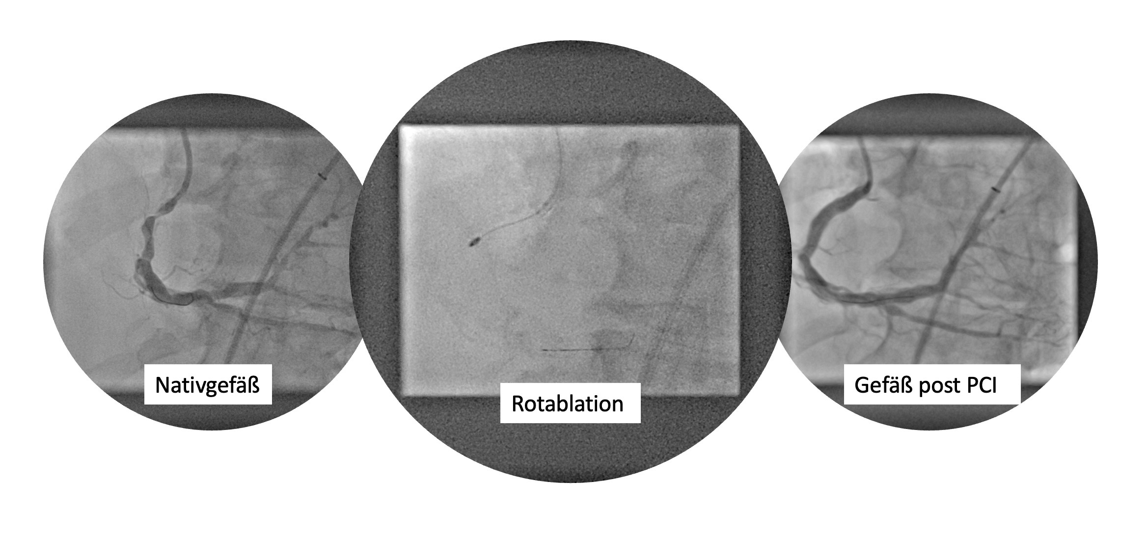 Angiographische Darstellung der rechten Herzkranzarterie vor und nach Rotablation