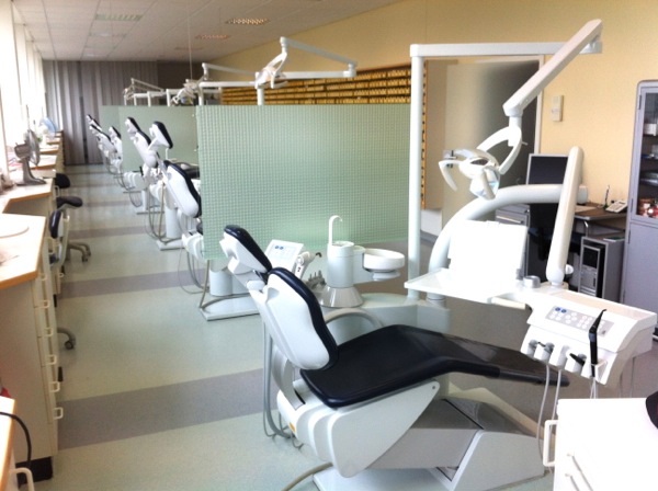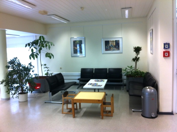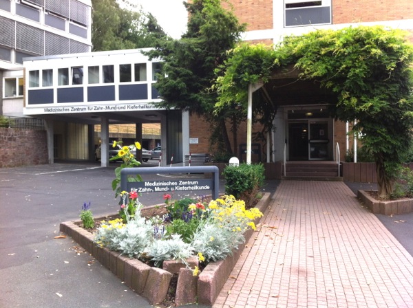 Der Eingangsbereich der Zahnklinik. Die Abteilung für Kieferorthopädie befindet sich im Erdgeschoss.